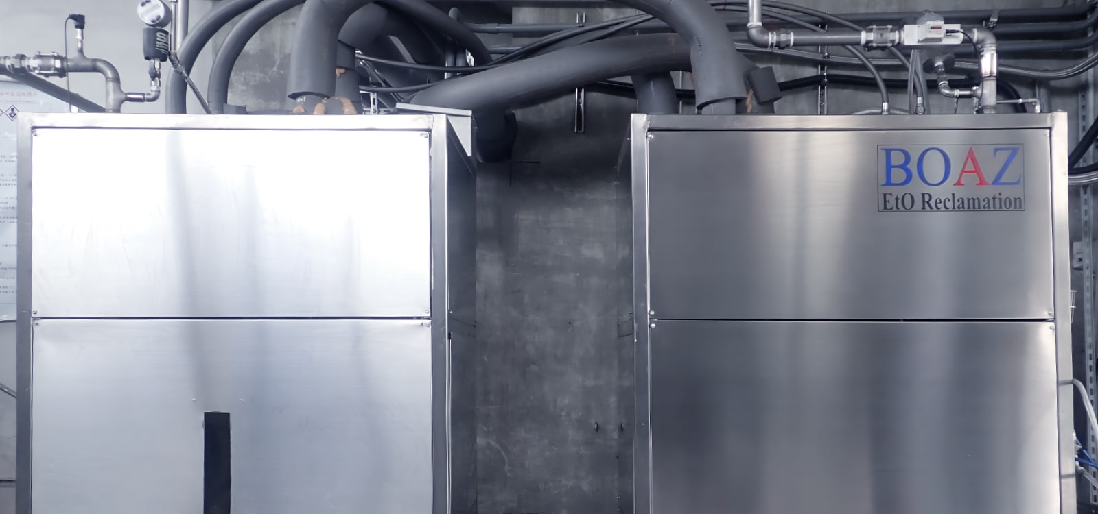 At our facility in Taiwan, a BOAZ recovery system has been installed and operational for two years. We have collected data on EO reclamation from four EO sterilizers, each with a usable capacity of 4 pallets.